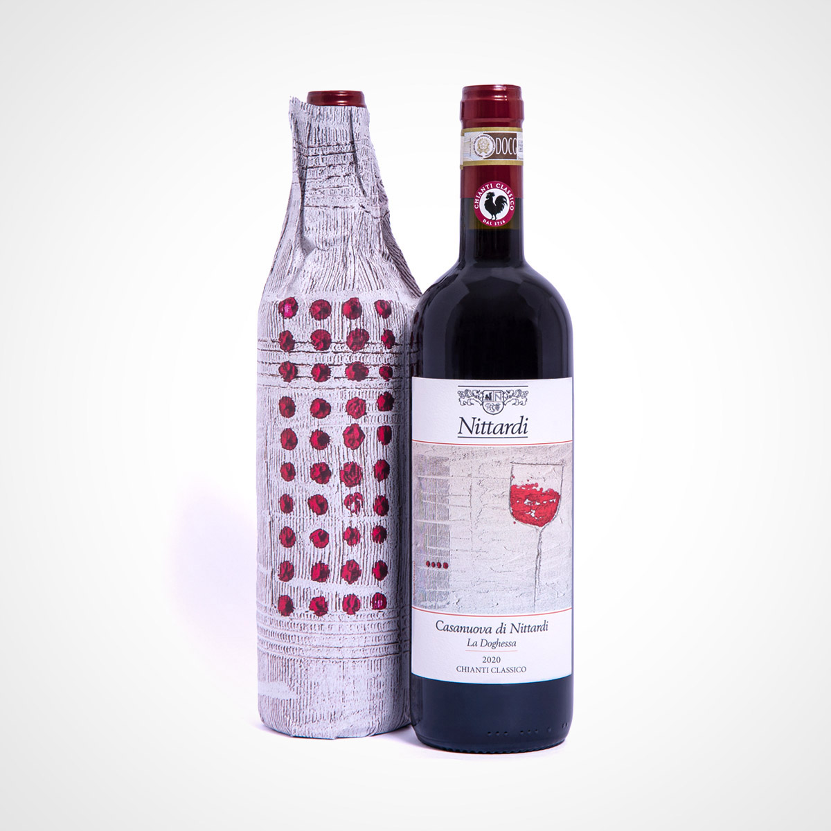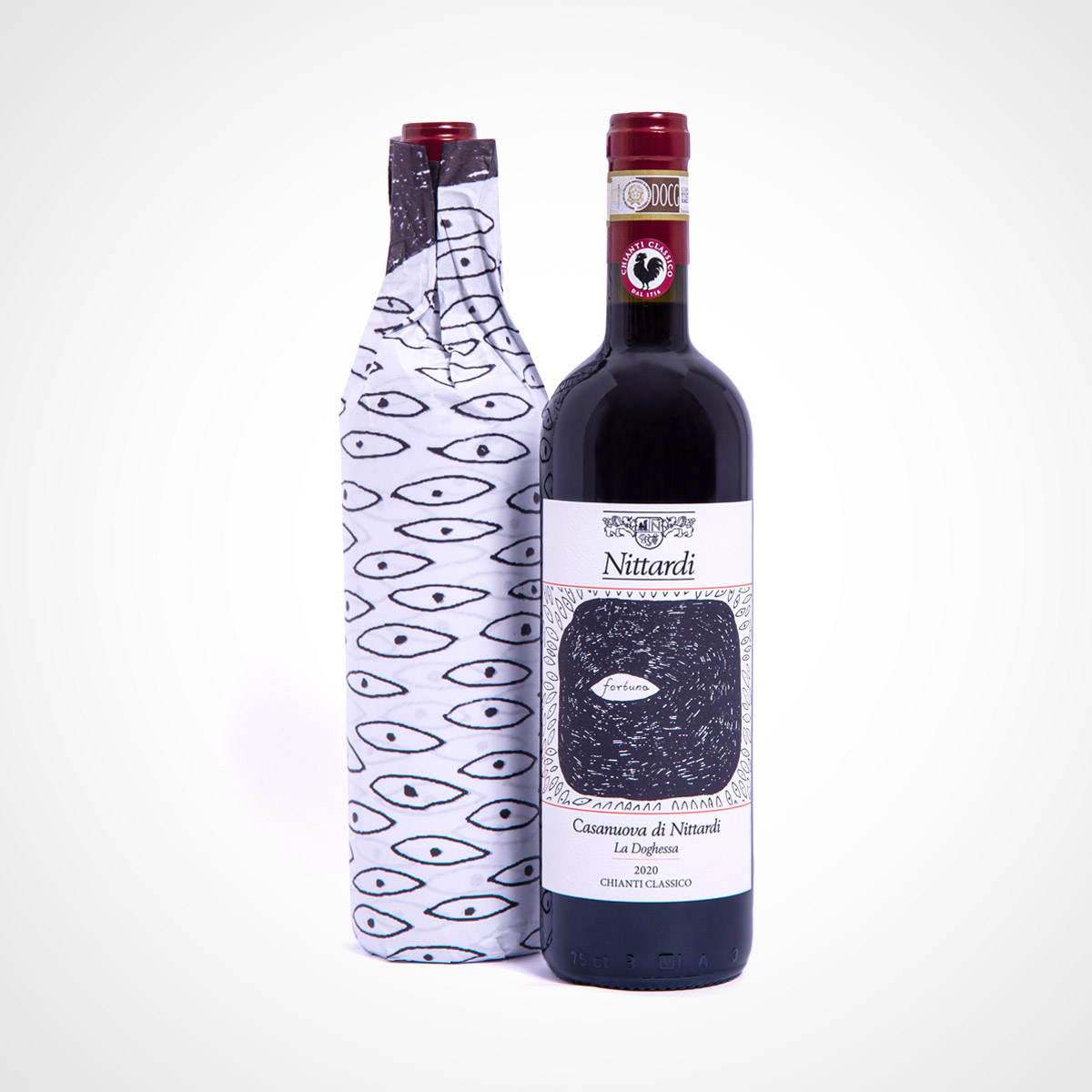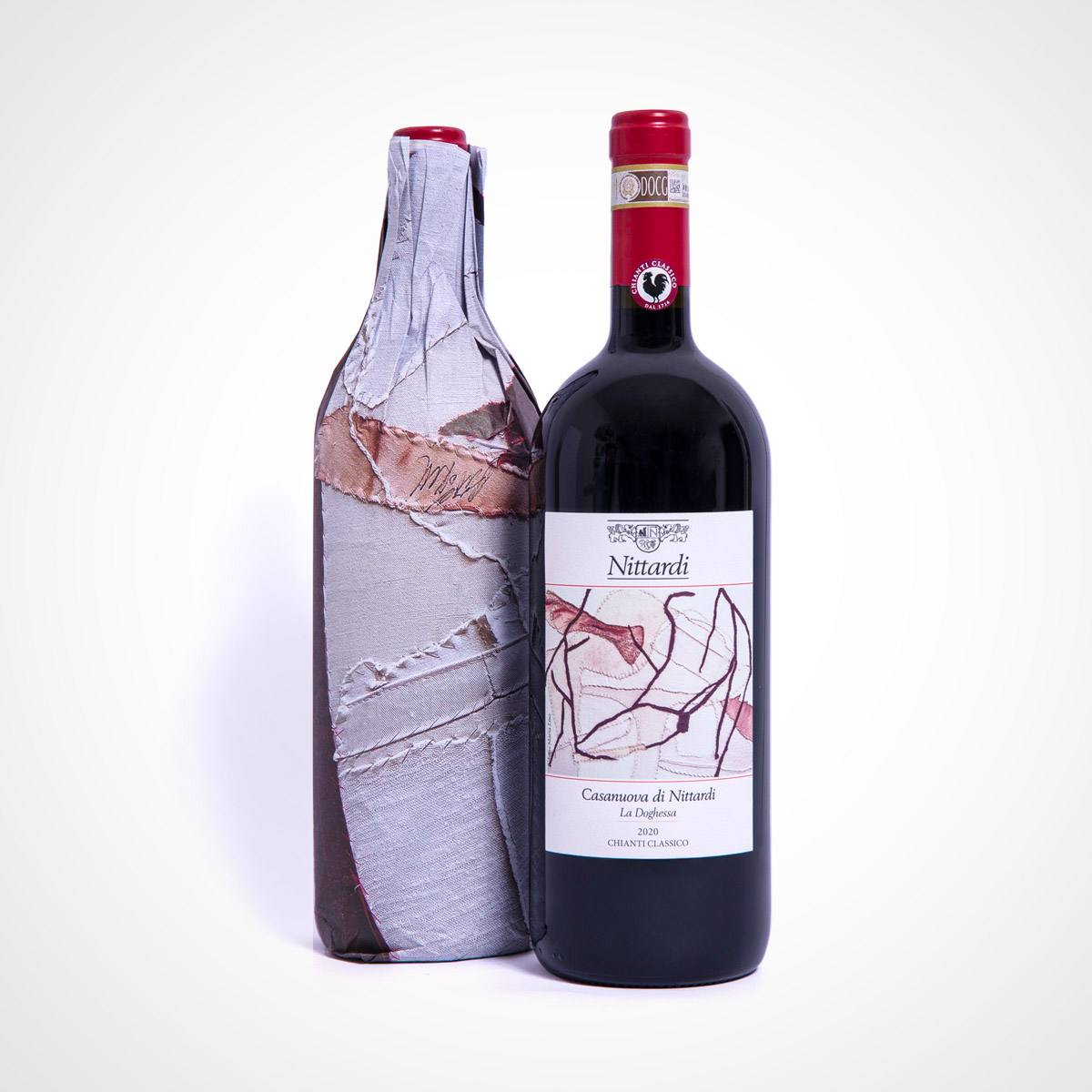 And in this tradition, with Chianti Classico Casanuova di Nittardi 2020 we are celebrating 40 years of a precious collection of artist labels and wrapping papers. Since 1981, a literal Who’s Who of the international art world has honoured Nittardi with artworks: Tomi Ungerer, Yoko Ono, Dario Fo, Emilio Tadini, Günter Grass, Hundertwasser and many others have created two works for Nittardi, one for the label and one for the tissue paper within which the bottle is wrapped. A tribute to Michelangelo, the illustrious previous owner of Nittardi, and to the visual arts – and to the nectar of the gods.
