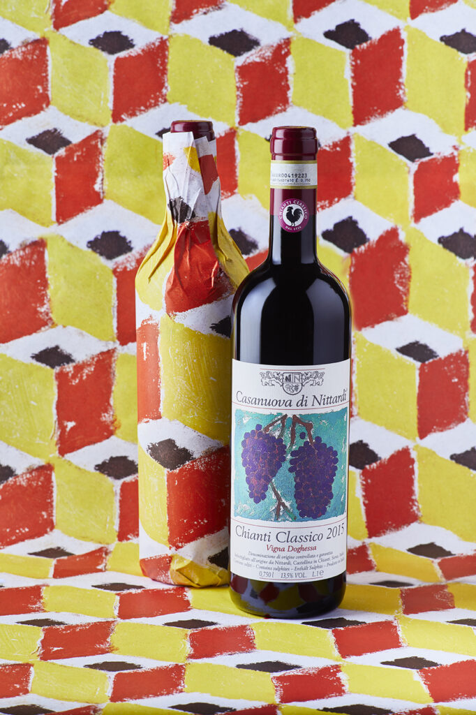 Since 1981, the label and wrapping paper for each vintage of Chianti Classico Casanuova di Nittardi Vigna Doghessa has been created by a different world-renowned artist. Two works of art every year, for 35 years.
